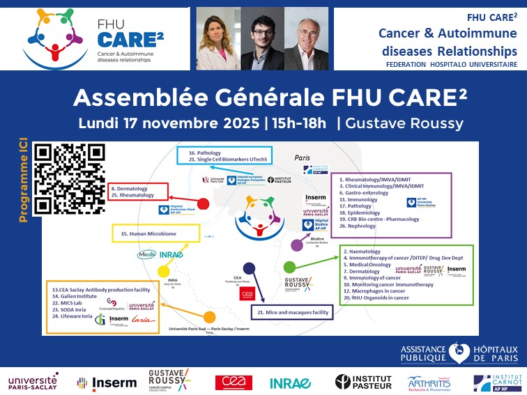 - 15h25 – 15h40 : Les CHIP intra tumoral, moteur caché des maladies auto-immunes sévères : Elsa Bernard